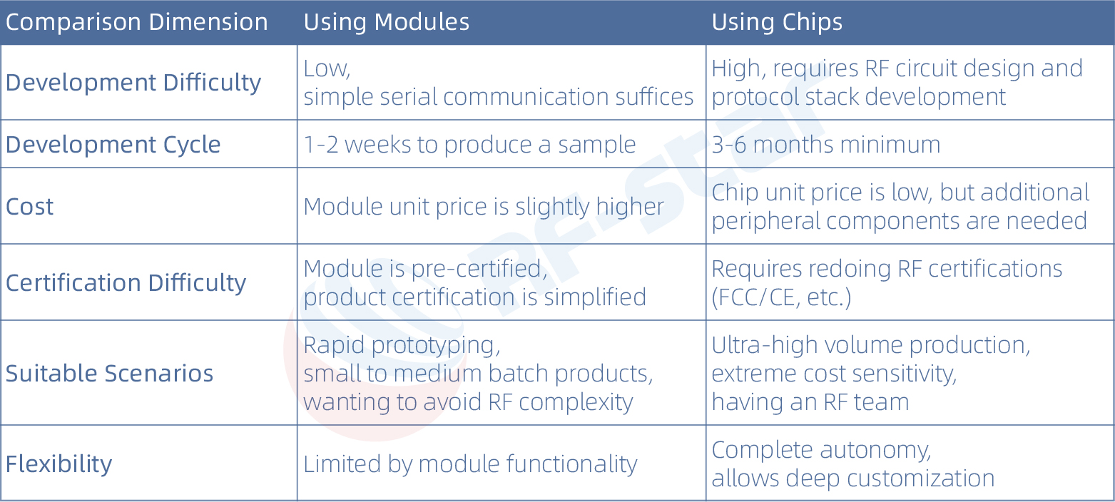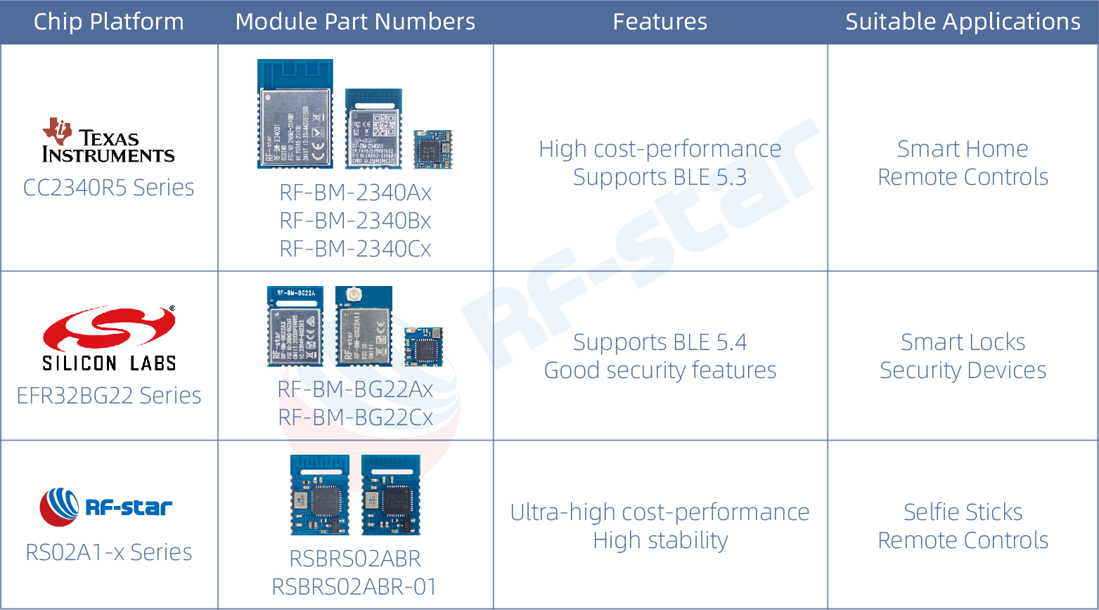 Kontrol Modülü: Kendi işlem gücüne sahiptir ve mantık için programlanabilir. Müşteriler, çipin dahili çekirdeğini kullanmak için kendi programlarını yazabilir, böylece harici bir MCU'dan tasarruf edebilir ve maliyetleri düşürebilirler. Örneğin, RF-star RF-BM-2340B1, dahili ARM Cortex-M0+ çekirdeğine sahip TI CC2340R5'i kullanır ve tüm GPIO'lar dışarı çıkarılmıştır, bu da hem Bluetooth iletişimini hem de kullanıcı uygulamalarını yönetmesine olanak tanır.